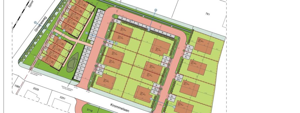 Zoals zichtbaar op de weergegeven foto’s is hier sprake van een groene locatie welke omgeven is door rustige wegen Krommelaan en Groeneweg.